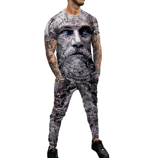 OFOKEDA Mens Personality Printed Sportswear Suit Jogging Gym Sportswear Two-Piece Set (DX202262CK 3XL) …